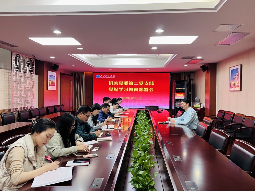 4月18日下午,党委常委、党委宣传部部长、党委统战部部长、机关党委第二党支部书记许立俊主持召开机关党委第二党支部党纪学习教育工作部署会。机关党委书记王利雅和支部全体党员参加会议。
