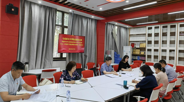 6月7日上午,马克思主义学院直属党支部理论学习中心组在思政课教学实践中心召开2024年第六次集体学习会,深入学习习近平总书记关于党纪学习教育的重要讲话和重要指示精神,开展学习《中国共产党纪律处分条例》专题交流研讨。直属党支部书记张亚军主持学习会。中心组全体成员参加学习。