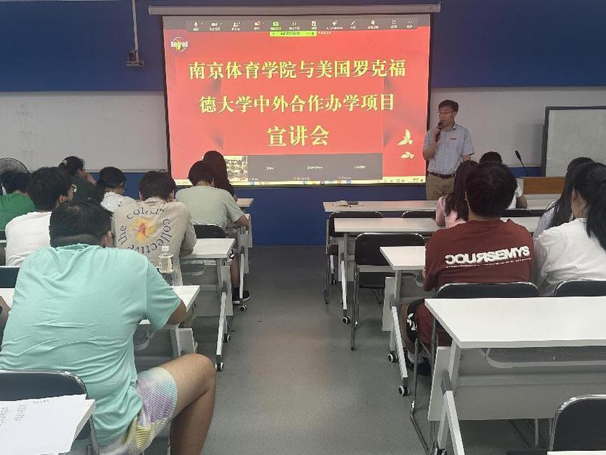 6月21日,体育产业与休闲学院与美国罗克福德大学在南京体育学院仙林校区中美多功能厅召开了意向学生宣讲会。美国罗克福德大学国际事务部主任Maria Diemer、国际事务部助理主任、英语学院院长Maggie Kasicki、国际事务部助理主任Julie Griffith、体育产业与休闲学院院长郭修金、体育产业与休闲学院副院长柏景岚、体育经济与管理系副主任王杉、美国罗克福德大学驻华代表留学服务中心主任曾庆娟、教学教务主管胡恒、中外合作办学项目相关教师和2022级有意向第四年去美国学习的同学出席了会议。会议由王杉主持。