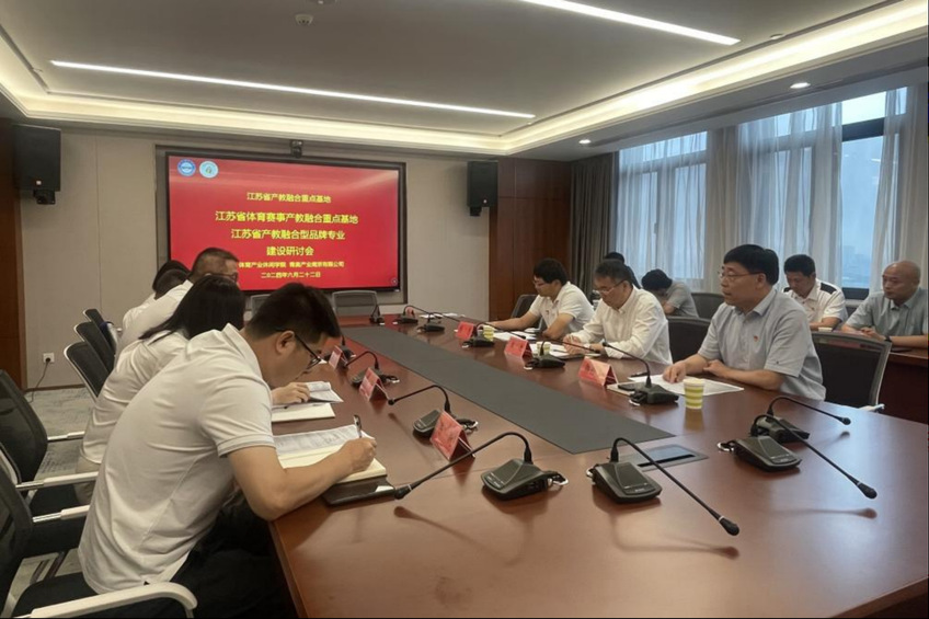 6月22日,体育产业与休闲学院召开产教融合重点基地、产教融合型品牌专业建设研讨会。学院党总支书记王进、院长郭修金、党总支副书记陈志,青奥产业南京有限公司党支部书记袁葳、党支部委员雷俊及相关负责人参加会议。会议由体育产业与休闲学院院长郭修金主持。