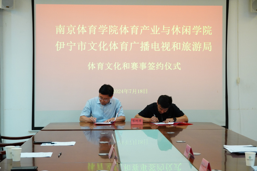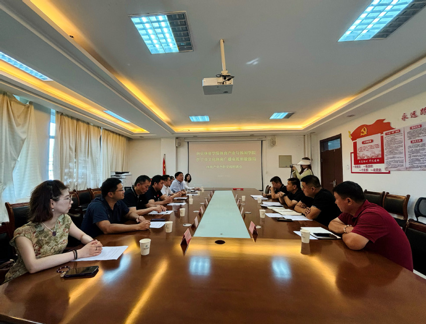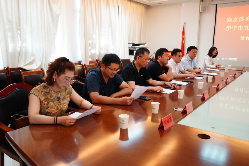 为加强南京与伊宁在体育产业领域的交流与合作,共同探索体育事业发展新路径,7月18日上午,体育产业与休闲学院与伊宁市文体广旅局开展体育产业合作交流座谈会暨体育文化和赛事签约仪式。伊宁市文体广旅局党组副书记、局长穆合塔尔·祖农,伊宁市业余体校党支部书记周立民,校长迪力夏提·买买提江,南京体育学院党委学生工作部、学生工作处处长丁永亮,校团委书记、创新创业学院院长陆春龙,体育产业与休闲学院党总支书记王进,学院院长郭修金,学院党总支副书记陈志及学院部分教师参加会议。会议由伊宁市文体广旅局党组成员、执法队大队长董颜主持。
