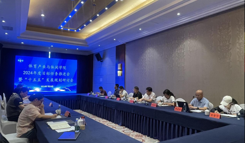 为进一步凝聚育人共识、汇聚发展力量,明确学院发展定位和工作思路,7月29日下午,体育产业与休闲学院召开2024年度工作目标任务推进会暨“十五五”发展规划研讨会。学院领导班子、各系正副主任,学工办主任,实训中心主任及骨干教师代表参加会议。会议由体育产业与休闲学院院长郭修金主持。