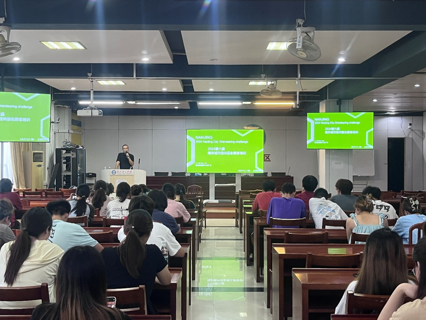 2024年9月3日,第六届南京城市定向赛志愿者培训会在仙林校区举办。在培训会上,姬新城讲师感谢了南京体育学院体育产业与休闲学院对其的信任与邀请,并对到来的志愿者们表示欢迎。接着他为在座志愿者们娓娓道出了南京定向赛的起源与发展进程,以此让志愿者们对即将展开的赛事有着更多的了解。其次,他对主会场功能区的志愿者岗位进行合理的安排规划。考虑到赛事场地比较广阔,他详细介绍了S1、S2、S3、S4的线路布局与游戏设置。借助生动直观的课件,姬新城讲师强调了本次活动的场地布局与任务分工,图文交错之间丰富了志愿者们的知识储备。