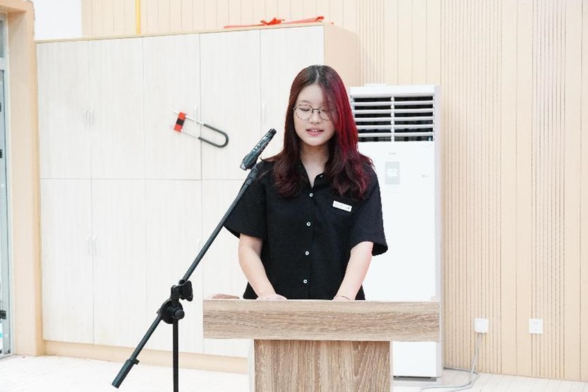沈鹤军以“砥砺前行 共绘青春华章”为题发表讲话。她首先介绍了学院的专业历史、学科优势及发展前景,向新生们展示了我院丰富的社团活动和浓厚的文化氛围。她指出,大学是同学们新生活的起点,希望同学们能在人生新阶段努力学习文化知识、合理规划时间安排,在学院为同学们搭建的专业平台之上,奋发向上、成长成才,传承优良的精神风貌,为时代贡献自己的青春力量。