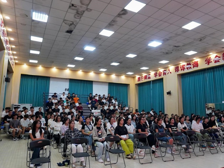 9月11日下午,体育教育与人文学院于东阶举行2024级新生见面会。体育教育与人文学院党总支书记卢奎、院长沈鹤军、副书记喻菊、副院长康晓磊、学院各系部主任以及部分专业教师出席见面会。新生班主任、2024级全体新生参加见面会。会议由学工办主任及新生辅导员赵玉超主持。