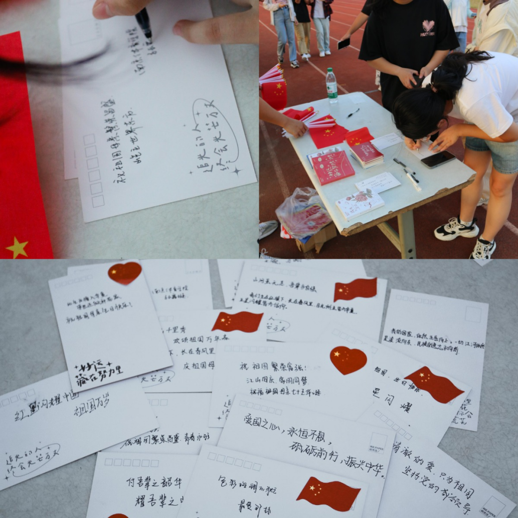 随后,同学们以笔墨为媒,在明信片上写下对祖国母亲的祝福,抒发对伟大祖国母亲的深切祝福。他们用真挚的情感,将心中的爱国情怀化作一句句温暖的话语,字里行间充满了对祖国的敬仰与热爱。有的同学写道:“愿祖国母亲繁荣昌盛,国泰民安,我们定当不负韶华,砥砺前行。”还有的则深情地写道:“在您的怀抱中,我们茁壮成长,愿以青春之名,许您万世荣光。”每一笔、每一划,不仅凝聚着同学们对祖国的深情厚意,更激发了他们内心深处的爱国情怀。在未来的日子里,这份爱国情怀将如同灯塔一般,指引着他们前行的方向,让他们在青春的道路上更加坚定、更加勇敢。