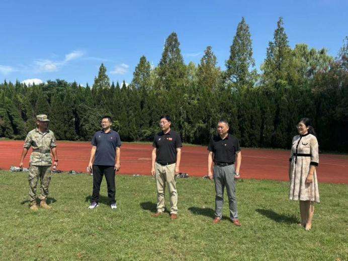 9月23日,体育产业与休闲学院党总支书记王进,学院院长郭修金,学院党总支副书记陈志,学院副院长柏景岚到达现场指导,观看体育产业与休闲学院和运动训练学院的军训汇演合练。