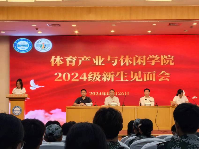 出席本次会议的领导有体育产业与休闲学院党总支书记王进,院长郭修金,党总支副书记陈志,副院长柏景岚,学院各科室负责人,新生辅导员,班主任以及全院2024级新生。