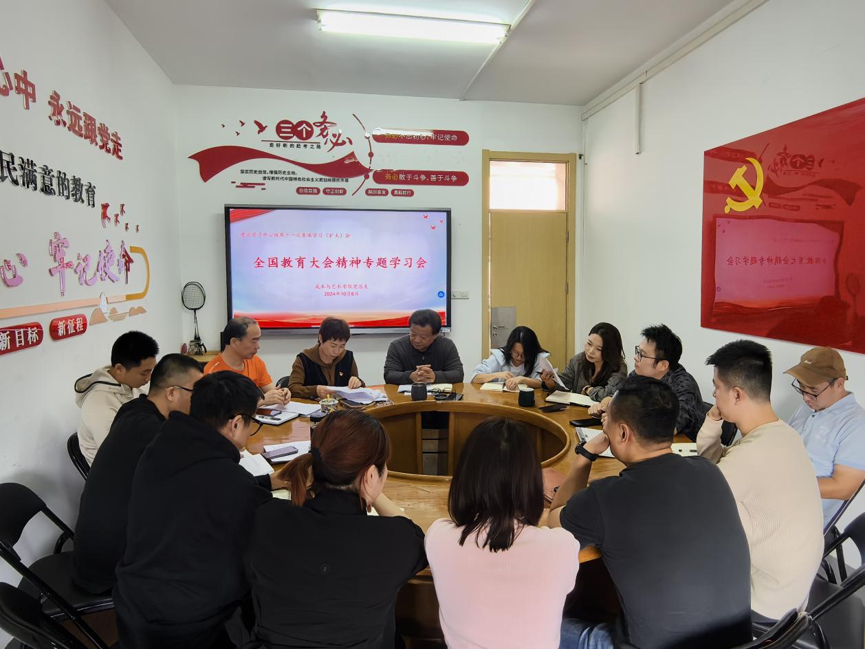 会议指出,全国教育大会适逢第40个教师节,对加快建设教育强国作出了动员部署,在我国教育发展史上具有里程碑意义。会议强调,要学习宣传贯彻好全国教育大会精神和党的二十届三中全会精神,要做到率先学、深入学,全面领会习近平总书记在全国教育大会上的重要讲话精神,系统掌握习近平同志《论教育》,深刻把握党的二十届三中全会精神,积极营造奋勇争先、推进教育强国建设的良好氛围。要进一步加强教师队伍建设,大力弘扬教育家精神,培养一支师德高尚、业务精湛、充满活力的高素质教师队伍,真正将学习成果转化为推动武术与艺术学院各项事业高质量发展的强大动力和推进学校高水平体育大学建设的重要力量。