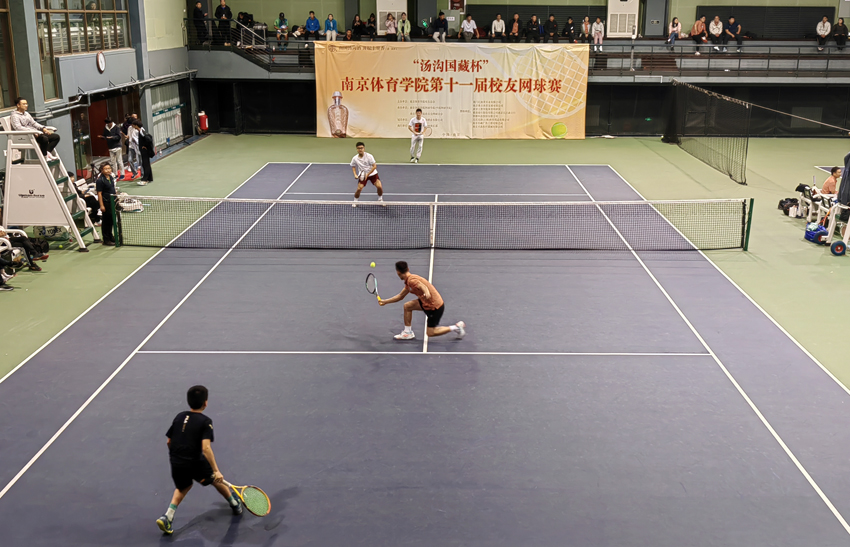10月26日,“汤沟国藏杯”南京体育学院第十一届校友网球赛在中国网球学院隆重举行。校党委书记刘红明,校党委副书记、校长杨国庆,校党委副书记、校友总会会长兰亚明,校党委常委、副校长鲍勤,汤沟两相和酒业有限公司党委书记、董事长朱耀汇,校友总会网球分会会长、南京银行城东支行行长周强出席开幕式,校党委常委许立俊、王猛、殷怀刚参加活动。