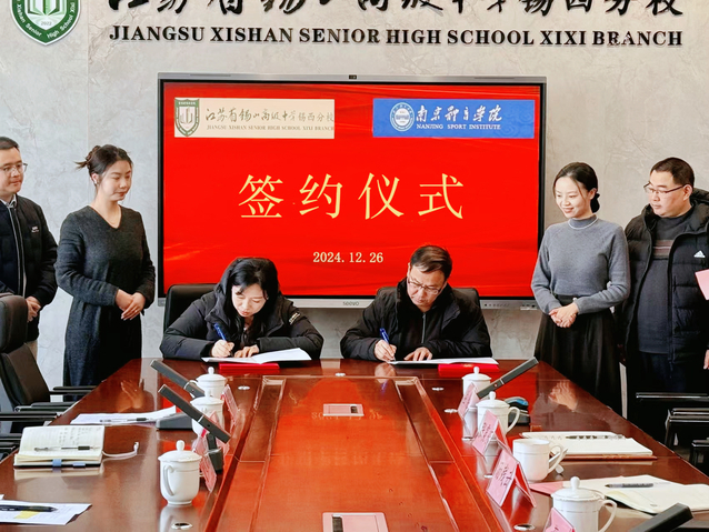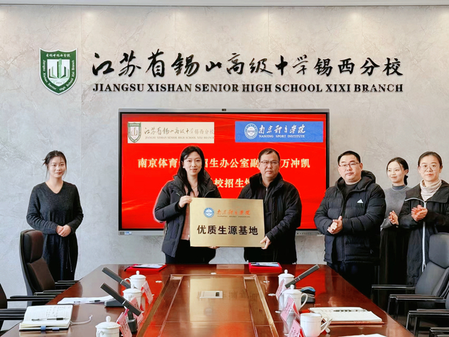 为积极推进“优质生源基地”建设,提升我校本科生源质量,进一步促进高中与高校人才培养的有效衔接,12月26日,运动健康学院党总支副书记阚妮妮、校招办副主任万冲凯和学院团委副书记魏晓民一行赴无锡锡山高级中学锡西分校举行“南京体育学院优质生源基地”签约授牌仪式。无锡锡山高级中学锡西分校校长张震东、副校长汤残云、办公处负责人左纯、学工处负责人薛莲出席本次活动。此次签约授牌仪式旨在搭建高校与中学人才衔接“直通车”、为吸纳优质生源拓宽渠道。