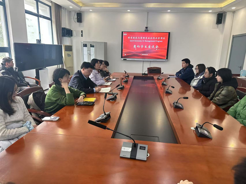 3月7日,体育产业与休闲学院在南京体育学院仙林校区A105会议室召开了中外合作意向出国学生座谈会。体育产业与休闲学院院长郭修金、体育产业与休闲学院副院长柏景岚、体育产业与休闲学院学工办主任唐佳、体育经济与管理系副主任王杉、体育经济与管理系教师詹虚致、社会体育系教师张婷婷、美国罗克福德大学驻华代表学业导师王婷和吴相仪、中外合作项目专职秘书杨林及中外合作办学项目2022级、2023级有意向赴美国学习的同学出席了会议,会议由柏景岚主持。