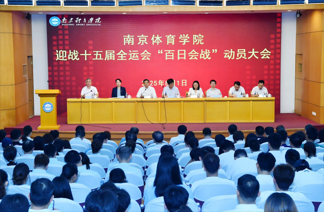 在第十五届全运会倒计时一百天之际,为进一步明确目标任务,部署备战工作,夯实主体责任,鼓舞三军斗志,8月1日上午,我校在图书馆报告厅隆重举行迎战十五届全运会“百日会战”动员大会。省体育局副局长刘彤,省体育局二级巡视员、竞体处处长许秋红,校党委书记刘红明,校党委副书记兰亚明,校领导鲍勤、刘健、刘海宁、王猛出席大会。会议由校党委常委、副校长刘健主持。