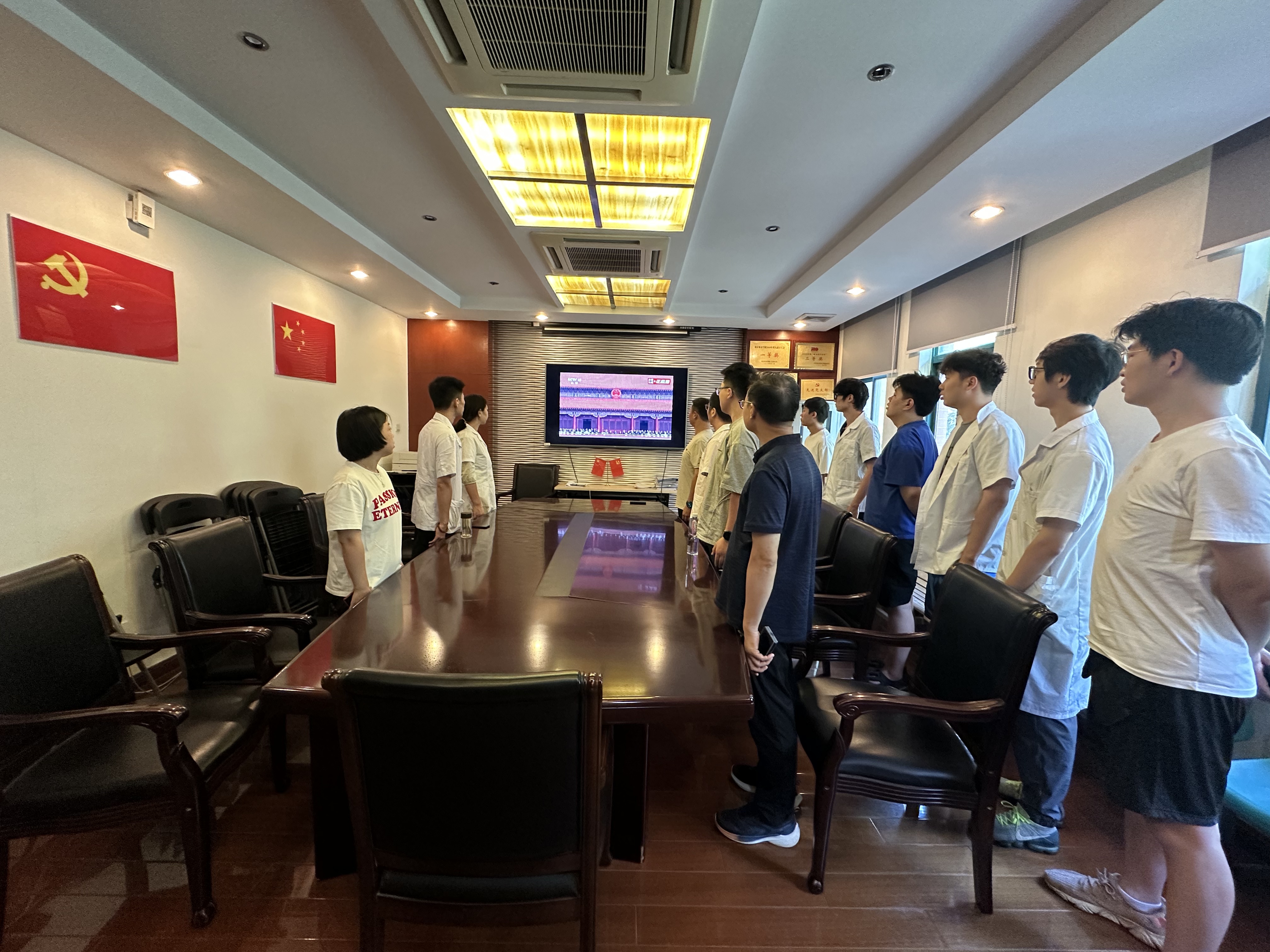 9月3日上午九时,运动康复医院组织集中观看纪念中国人民抗日战争暨世界反法西斯战争胜利80周年阅兵仪式直播。