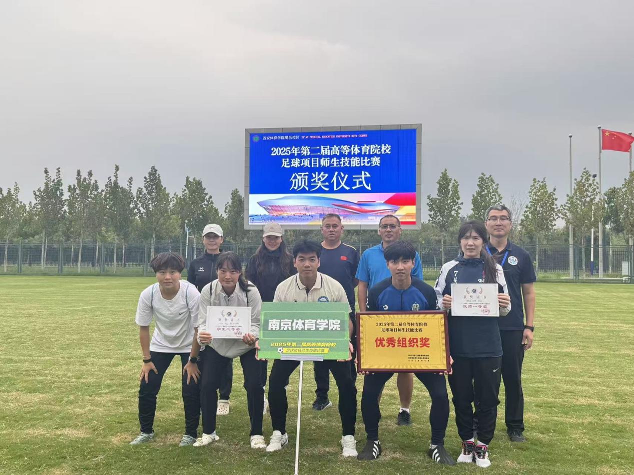 9月25—26日,2025年第二届高等体育院校足球项目师生技能比赛在西安体育学院圆满落幕,南京体育学院代表队凭借出色发挥载誉而归。本次比赛汇聚了北京体育大学、上海体育大学等全国12所高校的专业队伍。我校运动训练学院、足球学院组队参赛,马宁、刘红兵、董新风3人担任教练,张晓红、周霏霏、时晓雨3名老师组成教师组,4名足球专项学生(男女各2人)组成学生组。经过角逐,我校教师组以总分第2的优异成绩荣获一等奖,学生组荣获二等奖。同时,我校获得赛事“优秀组织奖”荣誉。