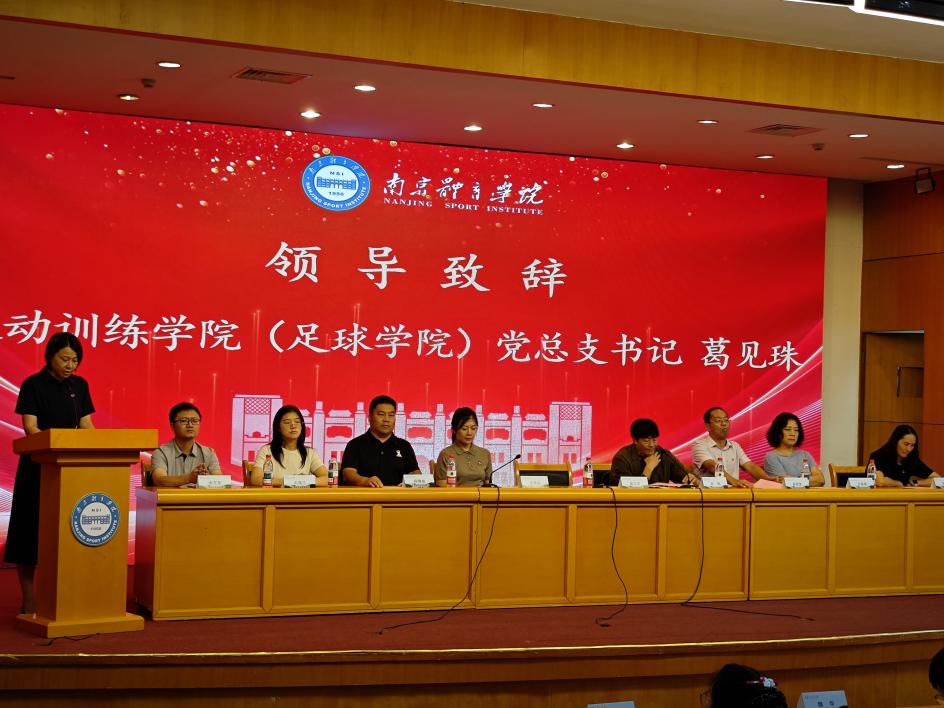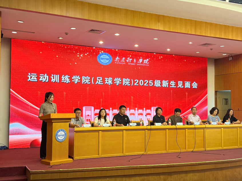 9月26日下午,运动训练学院(足球学院)在灵谷寺校区图书馆报告厅隆重举行2025级新生见面会。学院党总支书记葛见珠、院长赵琦、党总支副书记沈灵知,学院各系(办)主任、2025级辅导员、班主任以及全体新生参会。会议由学院党总支副书记沈灵知主持。
