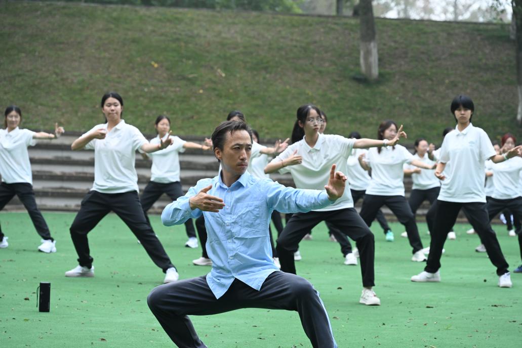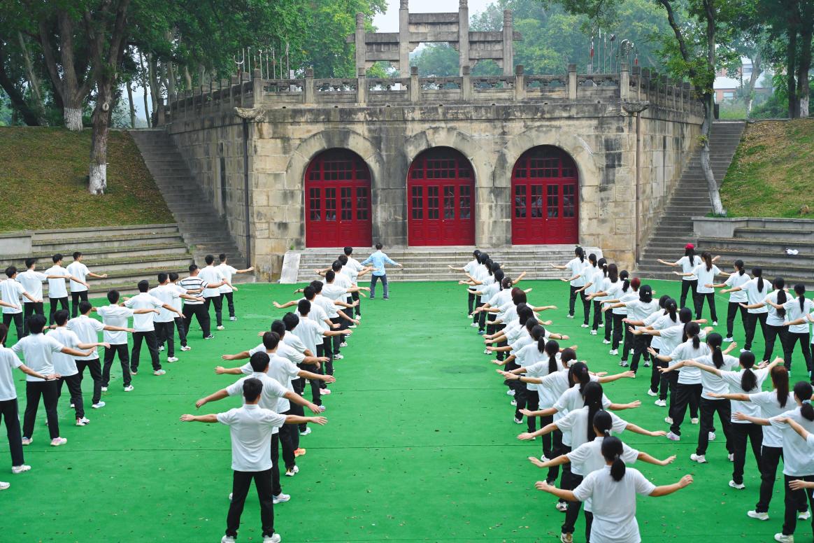 近日,运动健康学院2025级新生在晨曦中整齐列队,在国术场开启了以“晨光八段锦 青春活力行”为主题的新学期早操活动,以青春活力为国术场焕发新机。