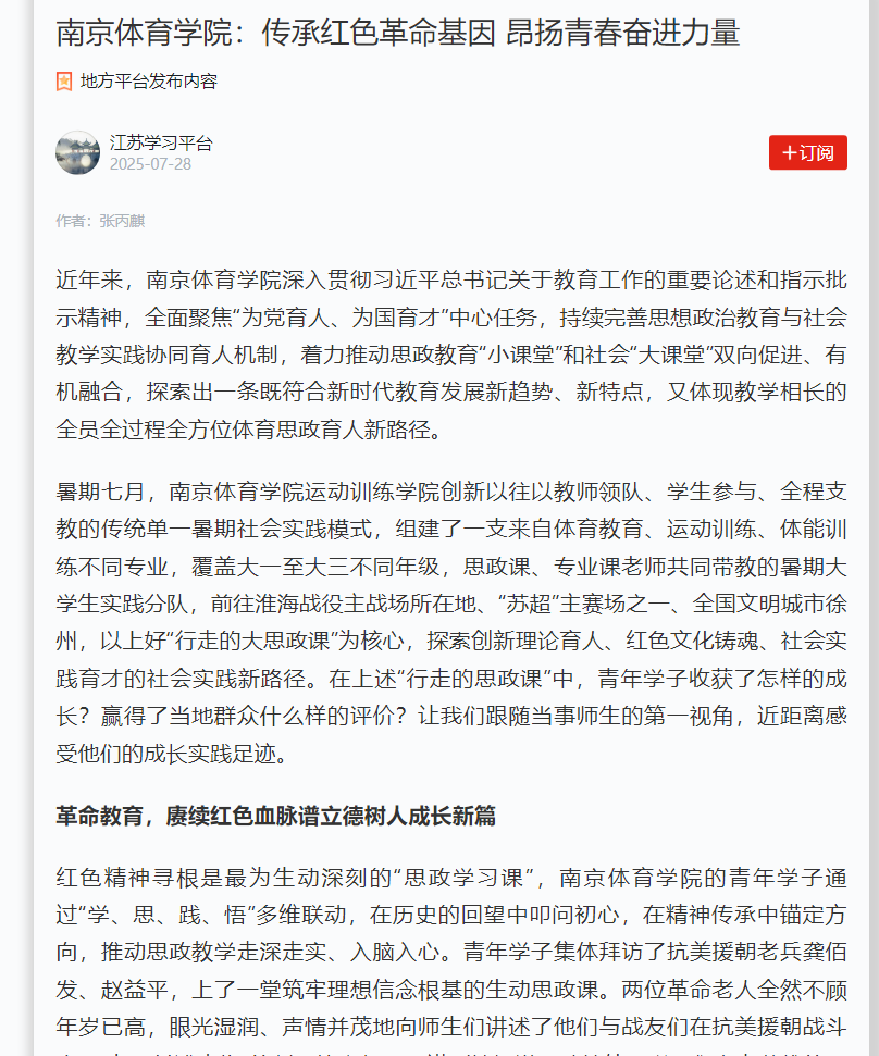 【学习强国】南京体育学院:传承红色革命基因 昂扬青春奋进力量
