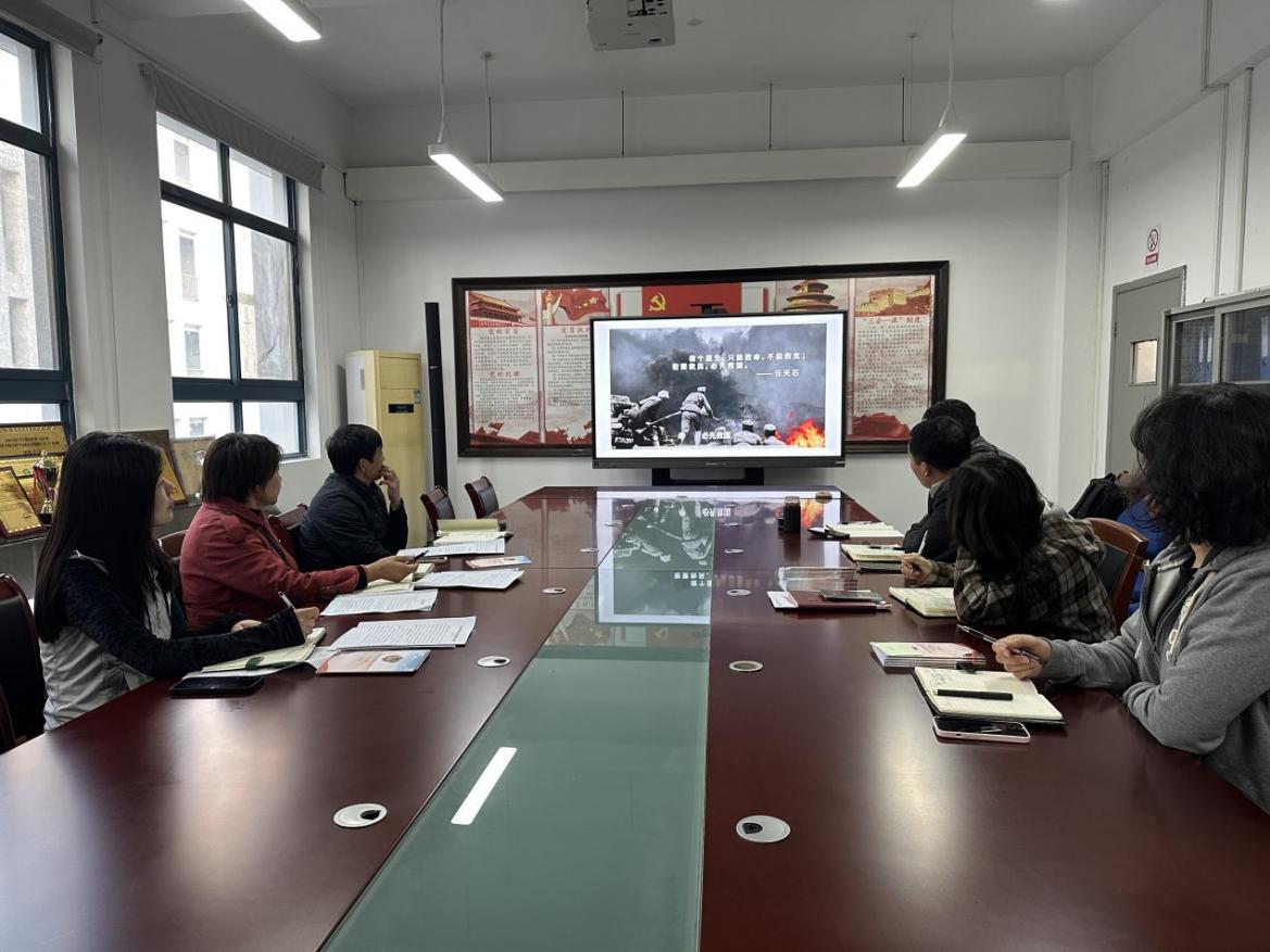 会上,葛见珠领学《习近平新时代中国特色社会主义思想课程体系和教学大纲》书籍中《习近平总书记关于党的建设的重要思想》部分,全体成员集中观看学习八秩荣光-弃医从戎救国难纪录片。