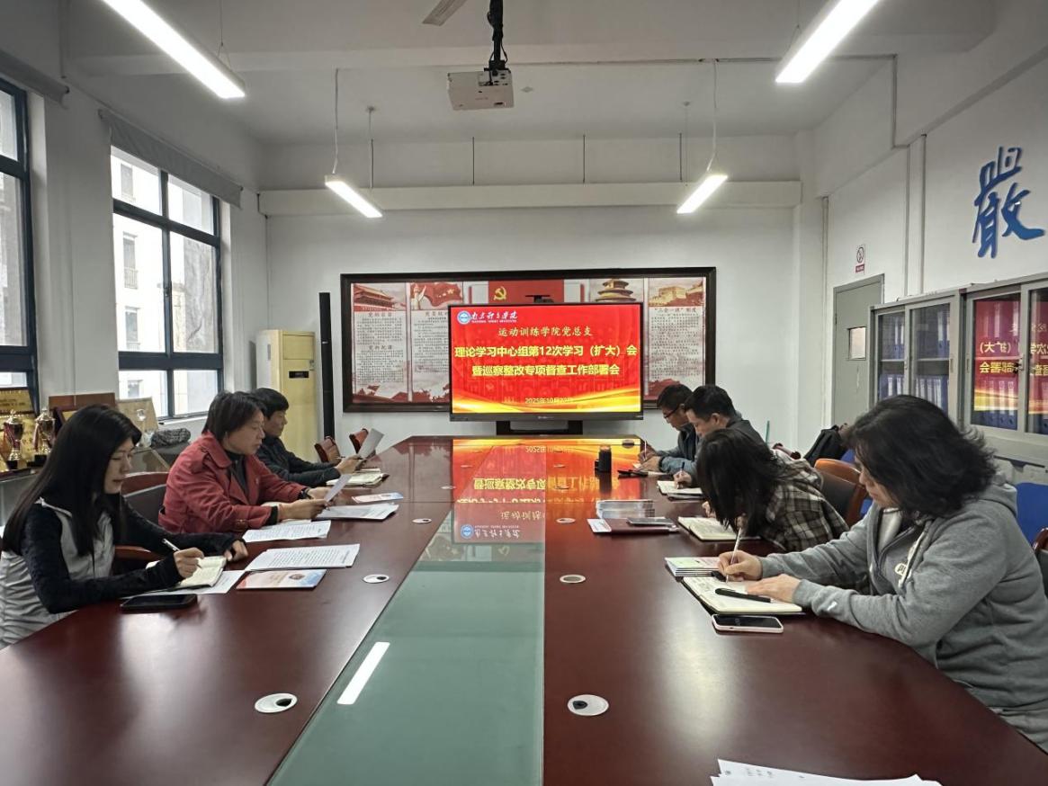 10月22日下午,运动训练学院党总支理论学习中心组第12次学习(扩大)会暨巡察整改专项督查工作部署会在仙林校区B305办公室召开。院领导班子成员、理论学习中心组成员参加会议。