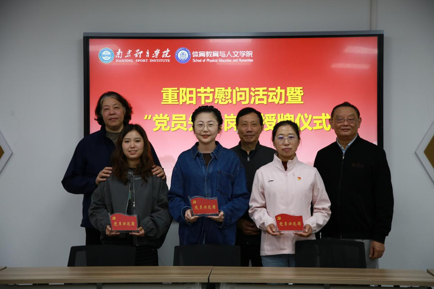 金秋送爽,丹桂飘香。在重阳佳节来临之际,为弘扬中华民族尊老敬老的优良传统,学习传承党员先锋模范作用,10月24日,体育教育与人文学院举行了重阳节慰问活动暨“党员示范岗”授牌仪式。学院“五老”代表、原校党委常委、副校长王正伦,院特邀党建组织员、原体育系主任王爱丰,退休老教师庄萍华参加活动。学院党总支书记卢奎,组织员谢明慧,学工办副主任、分团委副书记沈梦,“党员示范岗”青年教师党员代表出席活动。