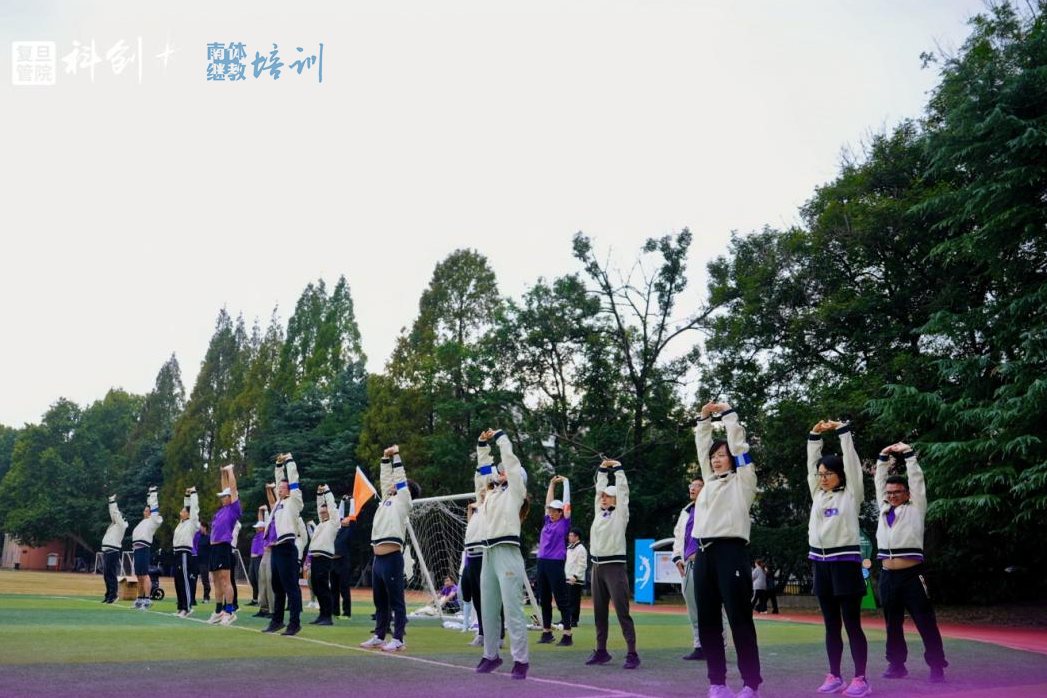南体“外观大势 内省自身”模块被定位为整个项目的“开场跑”,已连续五期设在南京体育学院。双方共同推出“智力+体能+抗压”课程:上午聚焦宏观视角,解读全球科技竞争、国内产业趋势与资本市场动态,引导学员从外部视角审视企业赛道选择与发展节奏;下午则转入“自我与团队”视角,通过体能挑战和团队任务,通过运动完成自我觉察与团队磨合,为后续学习奠定基础。