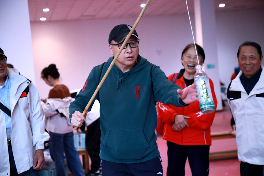 赛场上,老干部们精神矍铄,全力投入投篮、飞镖、排球发准、羽毛球、钓鱼、地滚球、沙包掷准、同心击鼓等项目角逐。投篮精准发力、飞镖凝神瞄准,展现专注力;羽毛球灵活走位尽显风采,钓鱼静享乐趣;地滚球、沙包掷准把控精妙,同心击鼓则以默契配合诠释团队精神。老同志们的精彩表现赢得了现场阵阵好评。