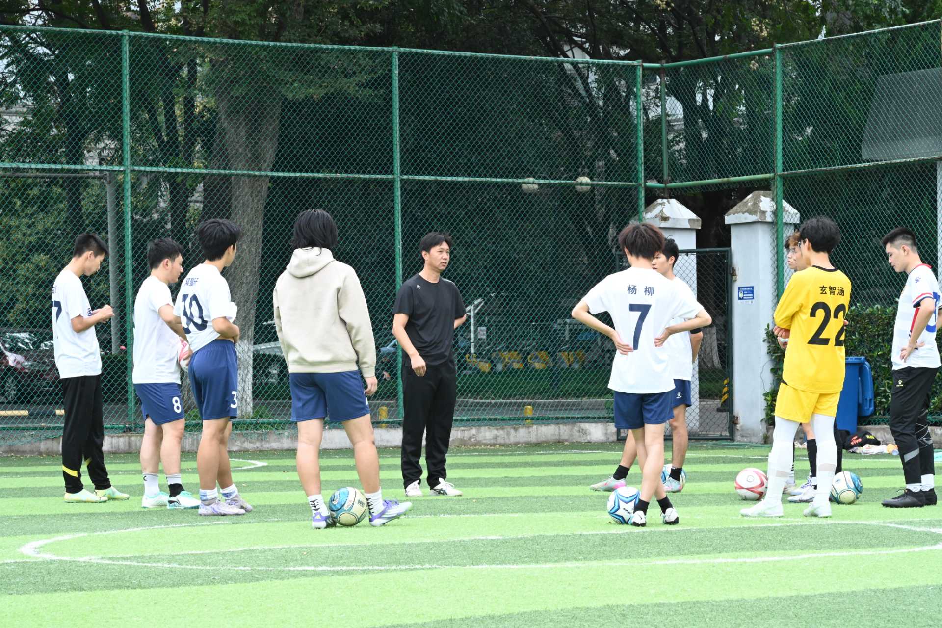 球队的成立,始于一场高标准、严要求的队员选拔。10月10日下午,来自学院各年级的足球爱好者们纷纷亮出“看家本领”,盘带、传球、射门,每一个动作都力求完美,展现了运康学子良好的运动风貌。最终,一支融合了技术、速度、力量与智慧的队伍脱颖而出。随后,队伍日常训练在南京农业大学洪海涛老师的悉心指导下有序进行,传接球训练是“必修课”,队员们在反复传球、停球的过程中,精准把控力度与角度,夯实技术动作的稳定性。基础训练结束后,分组对抗赛即刻展开,团队配合的默契度与临场应变能力被不断淬炼。这种从“基本功”到“实战术”的无缝衔接,确保了训练质量与效果的最大化。