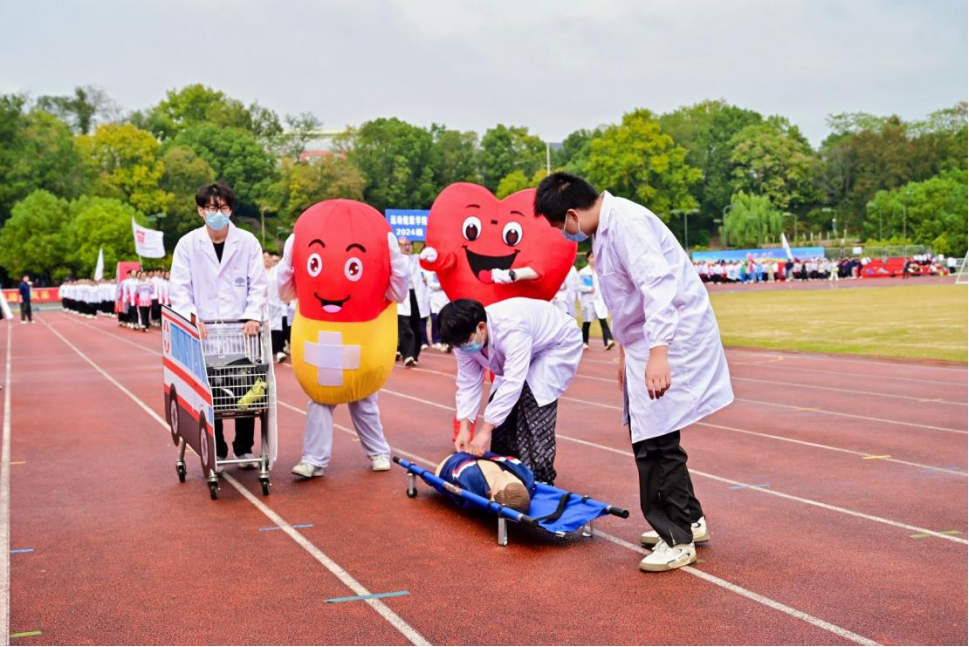 赛场之外,学院的“后勤保障团”同样专业。临时医疗服务小队携带肌效贴、冷敷袋等专业器材,为参赛同学提供赛前热身指导、赛后肌肉放松与损伤应急处理服务。
