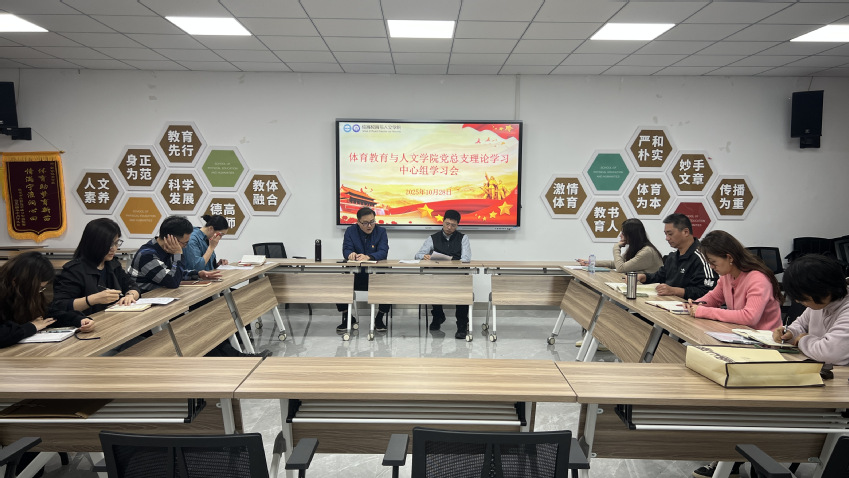 10月28日下午,体育教育与人文学院党总支理论学习中心组在220会议室举行专题学习研讨。会议由党总支书记卢奎主持,中心组全体成员参加。
