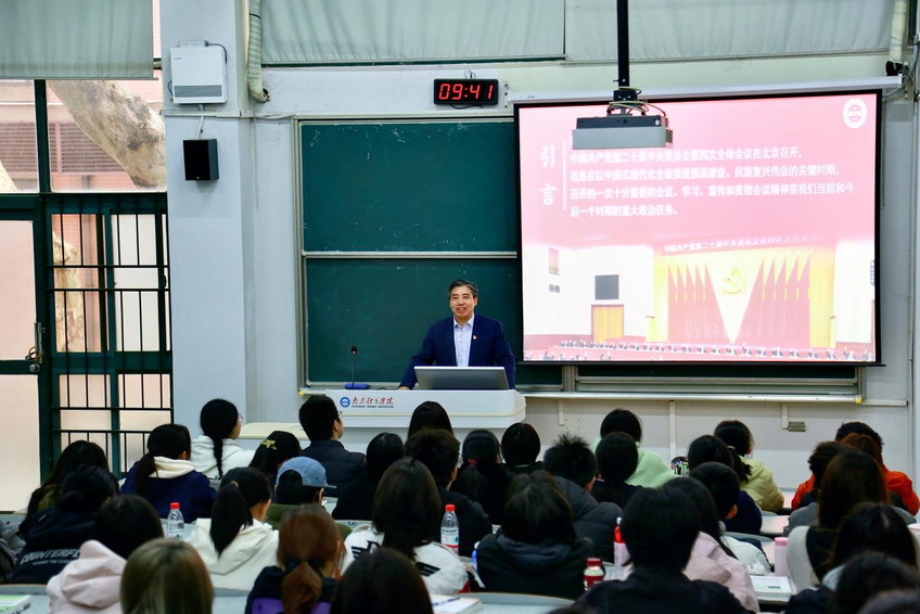 为深入学习贯彻中国共产党第二十届中央委员会第四次全体会议精神,引导广大青年学子准确把握时代脉搏,自觉将个人理想融入民族发展伟业。11月5日上午,党委书记刘红明走进思政课堂,以“为基本实现社会主义现代化而共同奋斗,不断开创以中国式现代化全面推进强国建设、民族复兴伟业新局面——中国共产党第二十届中央委员会第四次全体会议精神传达学习”为主题,面向2025级康复治疗学、运动康复学、新闻学3个专业的大一学生讲授专题思政课。