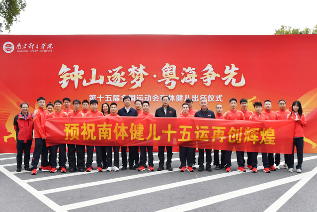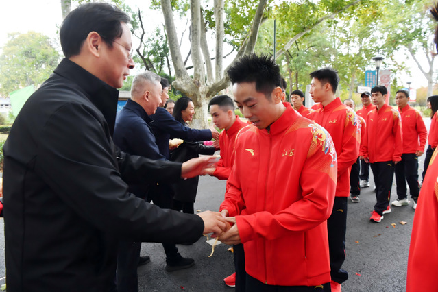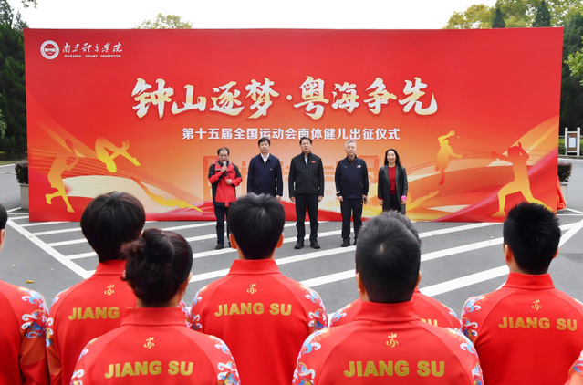 11月6日早晨,我校在奥运冠军大道隆重举行出征仪式,欢送我校体操队奔赴十五届全运会赛场。校党委副书记、校长吴兵成出席仪式并讲话,校党委常委、副校长刘健,校党委常委、党委组织部部长、综合考核办公室主任殷怀刚出席仪式。仪式由体操学院党总支书记谢长虹主持。