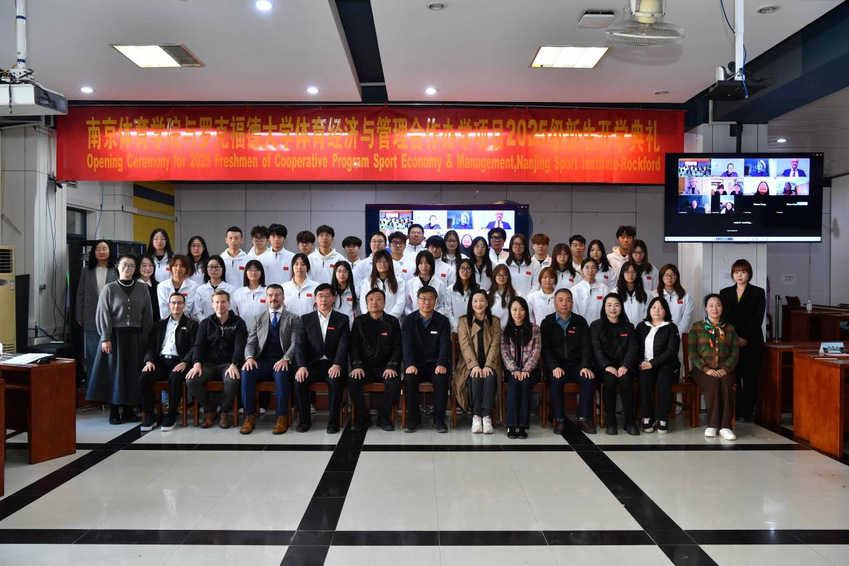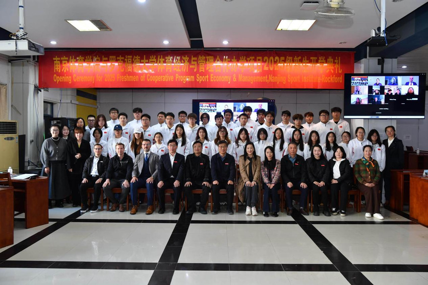 11月5日上午,南京体育学院与美国罗克福德大学体育经济与管理专业中外合作办学项目2025级新生开学典礼在南体仙林校区大学生活动中心顺利举办。这场盛会不仅为两校师生搭建了交流互动的平台,更彰显了两校在体育教育领域携手共进、推动人才培养国际化的美好愿景。
