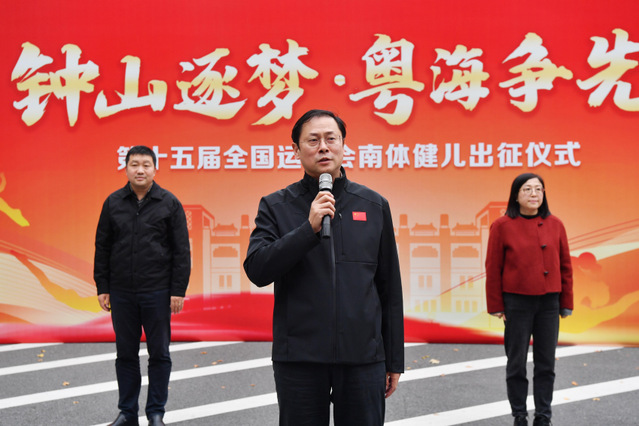 在庄重而热烈的氛围中,吴兵成向游泳队发布出征令。