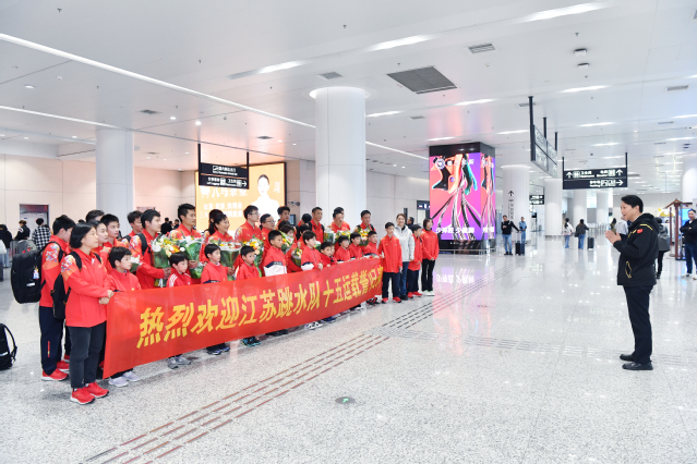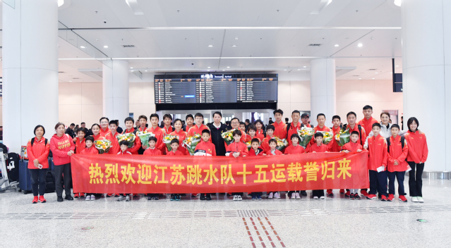 11月12日中午,江苏跳水队以第十五届全运会1银1铜的佳绩载誉返回南京。校党委常委、党委宣传部、党委统战部部长许立俊来到南京禄口机场迎接。