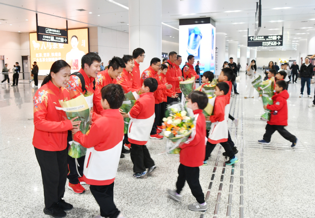 在出站通道,跳水队全体成员受到了来自母校师生代表的热烈欢迎。现场参与迎接的三线运动员代表共同为凯旋的运动员、教练员及管理科医保障团队献上鲜花。