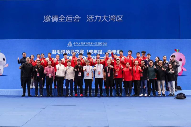 11月13日,第十五届全国运动会羽毛球青年组女子团体决赛在广东深圳落下帷幕,由南体健儿张乐瑶、刘一诺、周慧嘉、徐文婧、秦添悦、史思宸、刘思雅、潘欣妍、刘昱骁、辛佳蒋组成的江苏队以3:1战胜广东队获得青年组女子团体冠军!这是南京体育学院在本届全运会上夺得的第4枚金牌。