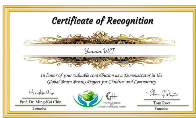 该视频动作由李龙、袁苑、张道鑫等编创,其动作简单易学、彰显中华武术眼随手走、轻重缓急等武术意蕴和韵律,被GCH采纳,充分彰显我校武术与民族传统体育学专业的教学成果,对弘扬中华武术文化、助推武术国际化发展具有重要价值。