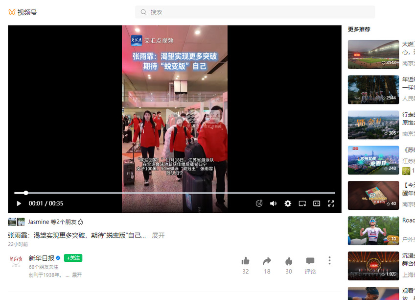 【新华日报】张雨霏:渴望实现更多突破,期待“蜕变版”自己
