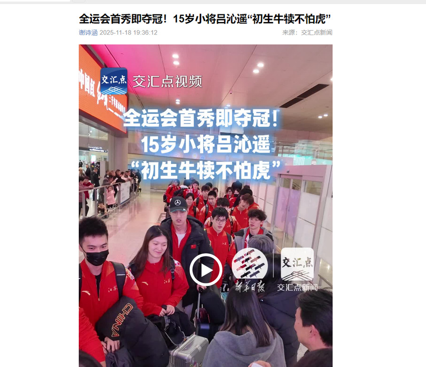 【交汇点新闻】全运会首秀即夺冠!15岁小将吕沁遥“初生牛犊不怕虎”