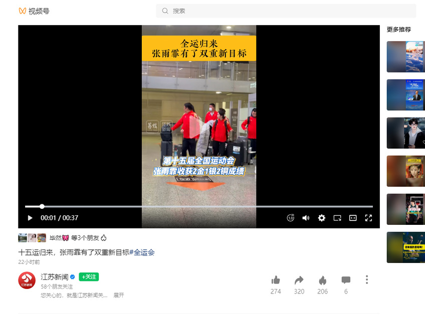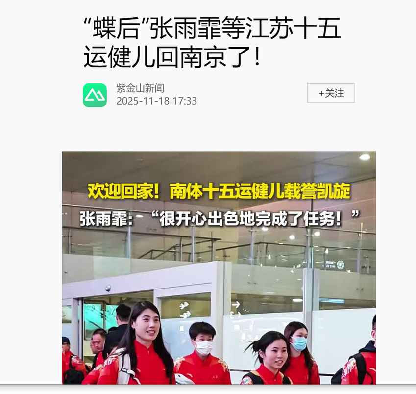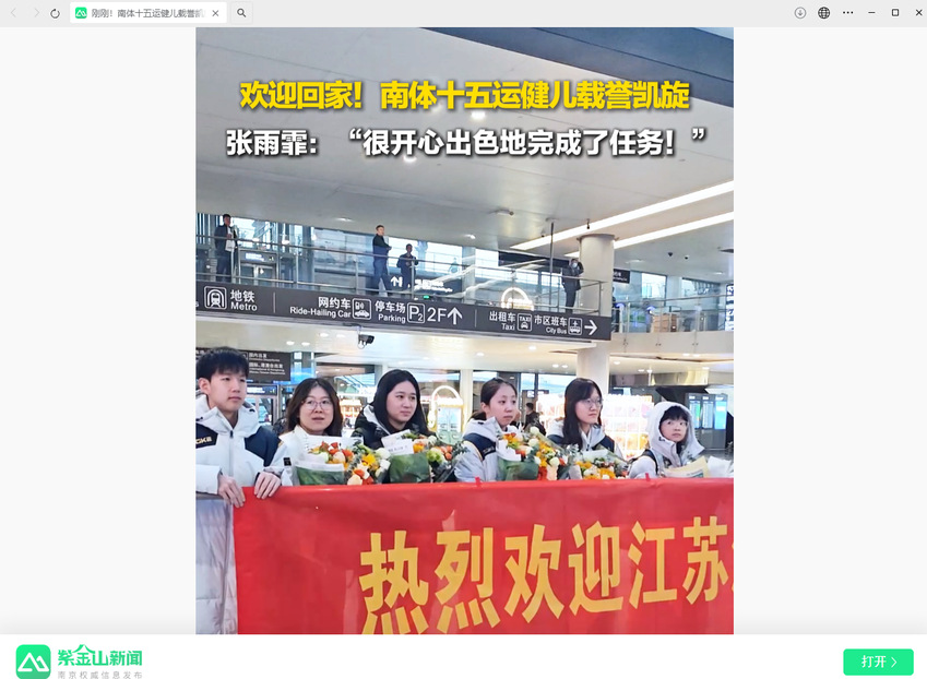 【紫金山新闻】“蝶后”张雨霏等江苏十五运健儿回南京了!