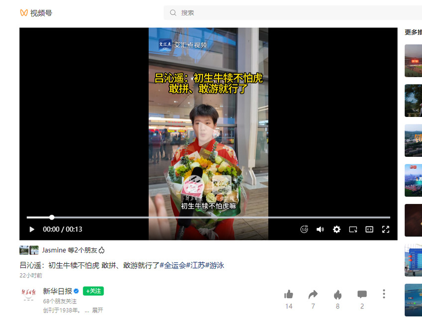 【新华日报】吕沁遥:初生牛犊不怕虎 敢拼、敢游就行了