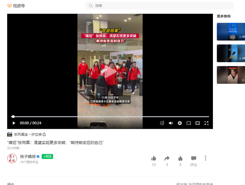 【扬子晚报】“蝶后”张雨霏:渴望实现更多突破,“期待蜕变后的自己”