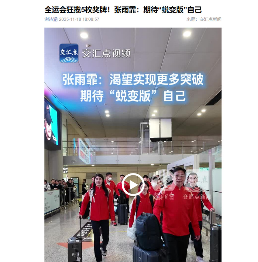 【交汇点新闻】全运会狂揽5枚奖牌!张雨霏:期待“蜕变版”自己