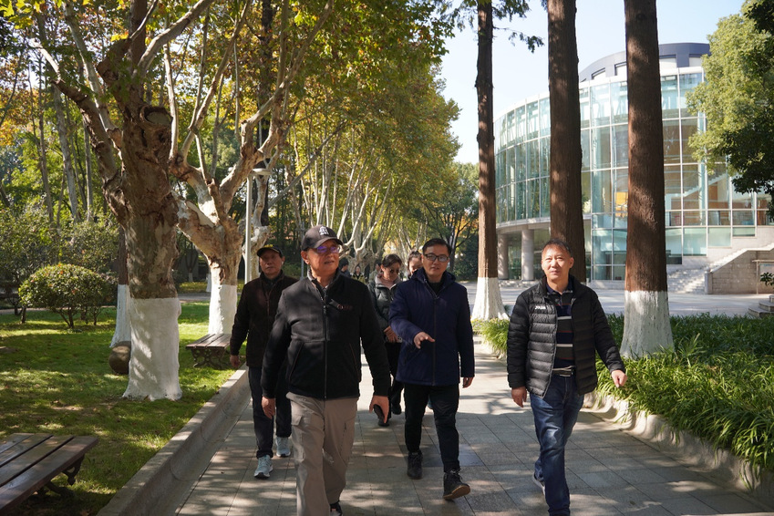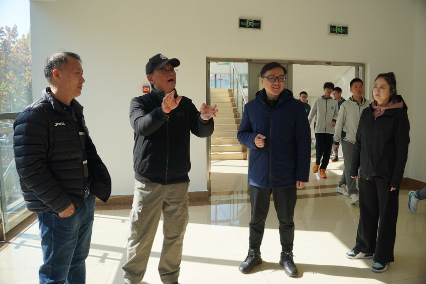 杨崇保带领大家参观乒乓球馆、排球馆、篮球馆、武术训练馆、高尔夫球馆及健身房等场地,重点讲解了各设施在日常教学、社团活动及赛事组织中的应用场景。参观过程中,关工委一行对南师附中完善的体育教学硬件设施给予高度评价,感谢学校为南体实习学生提供了优质的实践平台与悉心指导。