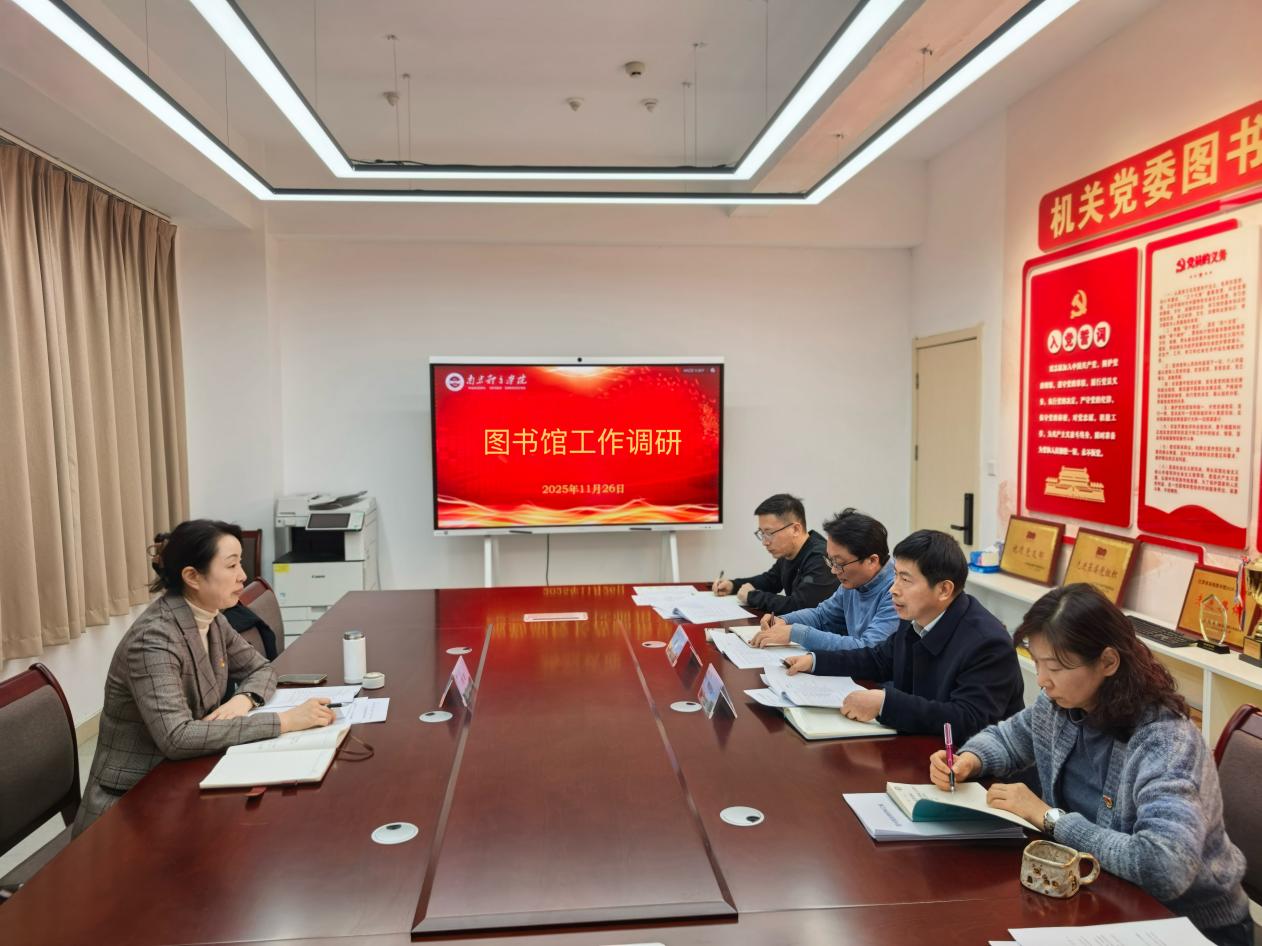调研会上,图书馆馆长李明华从图书馆建设发展历史沿革、当前馆情现状、2025年度目标任务完成情况、“十四五”周期工作总结与“十五五”规划愿景等几个层面做了详略得当的汇报。图书馆班子成员也分别从教学科研、科技查新、读者管理、队伍建设等方面做了汇报与交流。