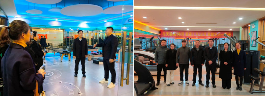 在企业负责人的引导下,学院一行参观了打卡健身生活馆,包括健身训练区、综合休闲区等多个功能区域。场馆设备先进、运营模式新颖,为学生未来参与实习、实践教学提供了丰富的资源和场景。