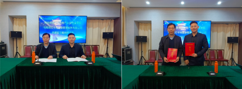 在双方共同见证下,学院与南京打卡地健身管理服务有限公司正式签署合作协议。该协议将进一步推动双方在学生实习实训、课程共建、师资互育、项目合作等方面的深入合作,为学生提供多元、真实、高质量的实践平台。