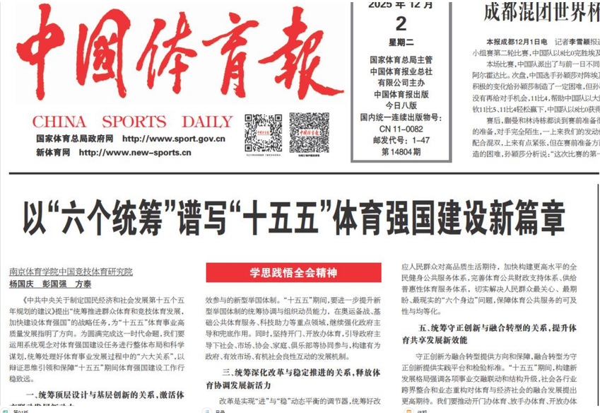 【中国体育报】以“六个统筹”谱写“十五五”体育强国建设新篇章http://www.chinasportsdaily.cn/tyb/h5/html5/2025-12/02/content_116877_19093256.htm