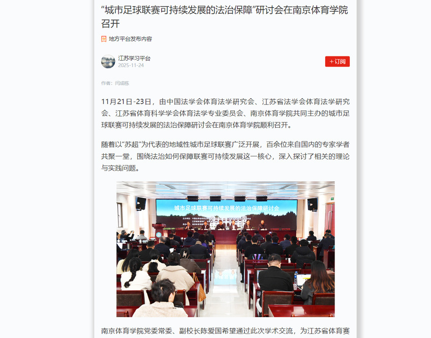 【学习强国】“城市足球联赛可持续发展的法治保障”研讨会在南京体育学院召开